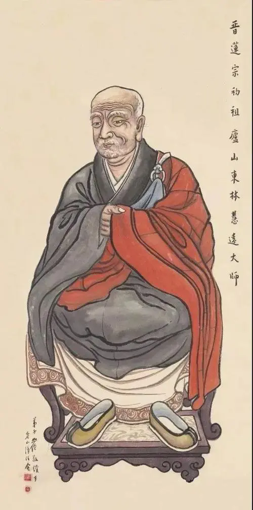 慧遠,(334~416)東晉僧,我國淨土宗初祖。廬山白蓮社創始者。雁門樓煩(山西崞縣)人,俗姓賈。十三歲,遊學許昌、洛陽,博通六經、老莊之學。二十一歲,偕弟慧持於太行恆山(河北曲陽西北)聽道安講般若經,頗有領悟,感嘆「儒道九流皆糠秕」,遂與弟俱投道安座下,剃度出家。