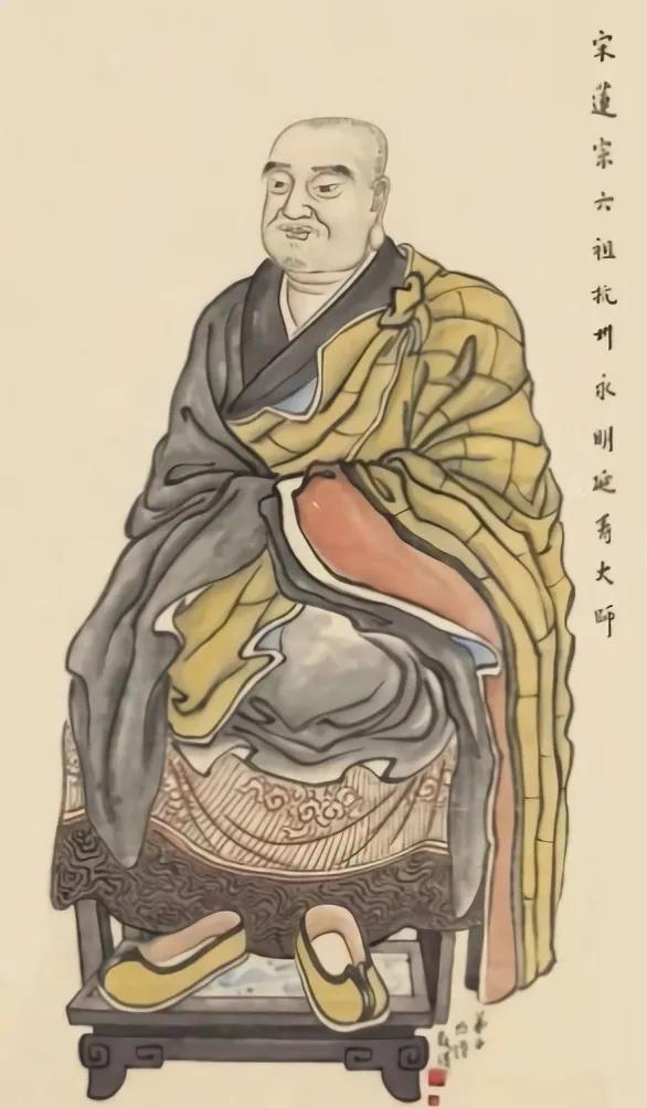 延壽,(904~975)唐末五代僧。淨土宗六祖,法眼宗三祖。臨安府餘杭(浙江杭縣)人,俗姓王。字仲玄。號抱一子。初為吏,三十歲依龍冊寺翠巖令參禪師出家。後往天台山參謁德韶國師,初習禪定,得其玄旨。後於國清寺行法華懺,頗有感悟,於是朝放諸生類,夕施食鬼神,讀誦法華經,又精修淨業。後住明州雪竇山傳法,法席甚盛,並復興杭州靈隱寺。建隆二年(961)應吳越王錢俶之請,遷永明大道場,接化大眾,故世稱永明大師。師倡禪淨雙修之道,指心為宗,四眾欽服,住永明十五年,時人號慈氏下生。