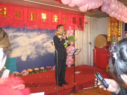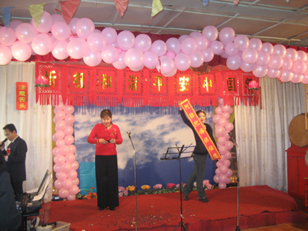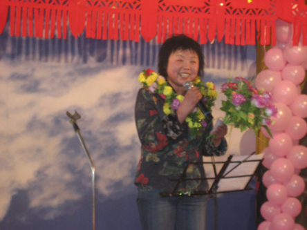 今天我来到,咱们联欢会上,高举金杯把赞歌唱,感谢我们的恩师指引,感谢伟大的佛佗思想。庄严的道场永远在我心上,佛陀思想象太阳放光芒,三圣庵居士欢聚在念佛堂,