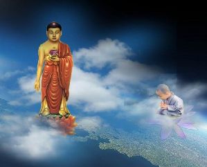 佛陀阿佛陀,伟大的佛陀,你用无限的慈悲发下了大愿,只要我们真心,只要我们专念,极乐的莲花就会绽放,花开见佛清静庄严,佛陀啊佛陀伟大的佛陀。您的形象多么崇高伟大,佛陀阿佛陀,您就像那慈父慈母恩难报达。伟大的佛陀哎、、、、、、