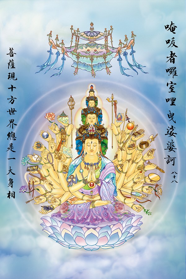 诵此陀罗尼者,世间八万四千种病,悉皆治之。若在山野诵经坐禅,如有山精魑魅鬼神恼乱,诵此咒一遍,诸鬼魔悉皆被缚。如法诵持者,观音菩萨,一切善神,金刚密迹,常随护卫,不离其侧。