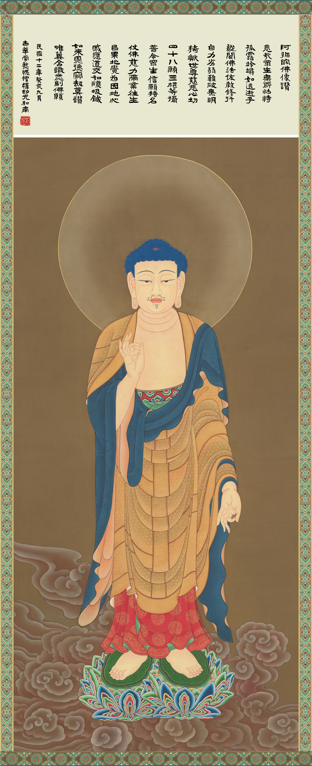 【佛像】印光大师亲笔题写阿弥陀佛像赞