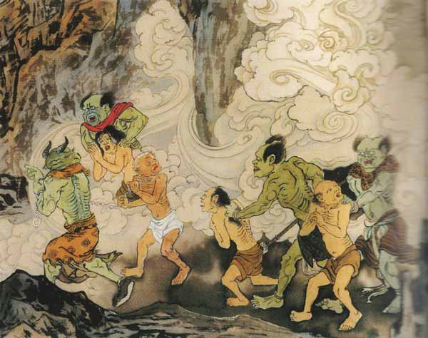 “欲海无边邪淫起 铜床铁拄是家邦”当知万恶淫为首,倡导罪尤深,诱惑亲犯邪淫者,至死习性难改,堕此地狱,身抱火柱,惨受炮烙煎烤,血肉模糊,成灰成烬,随风复生,重扑火柱,周而复始,犹似飞蛾扑火,明知凄惨苦痛,却情不自禁,至罪笑毕。投胎畜生报,纵得人身,亦受贫贱多疾短命,及眷属不贞之余报!