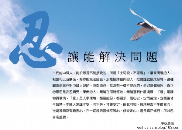 出家修道修什么道?就是修忍辱的道。谁若发脾气,那就与道相违背,永远不会与道相感应。发脾气是一件丑事,是障道的因缘,希望大家谨慎,千万不要犯这种毛病。出家修道,没有把根本的问题抓住,就如同用沙蒸饭,蒸多久的时间,也不会成饭。若是没有无明火,欲念就会停止,为什么?你有欲念,就因为有火气,觉得这也不行,那也不行,很多“不行”的问题跟着来了。所以修道人要把烦恼断了,才能没有一切的麻烦。