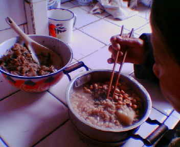 她口口声声说的这个“大钵”,对常人说来,简直不能称做是食物啊,就是个满满承载着变质食物的大碗!她坚持过午不食好多年了,而且常常是一锅煮熟所有的杂粮和前餐剩的蔬菜~她把自己用来买菜的生活费,全部省下来用做放生和助印(刻)经典和佛菩萨圣像了!