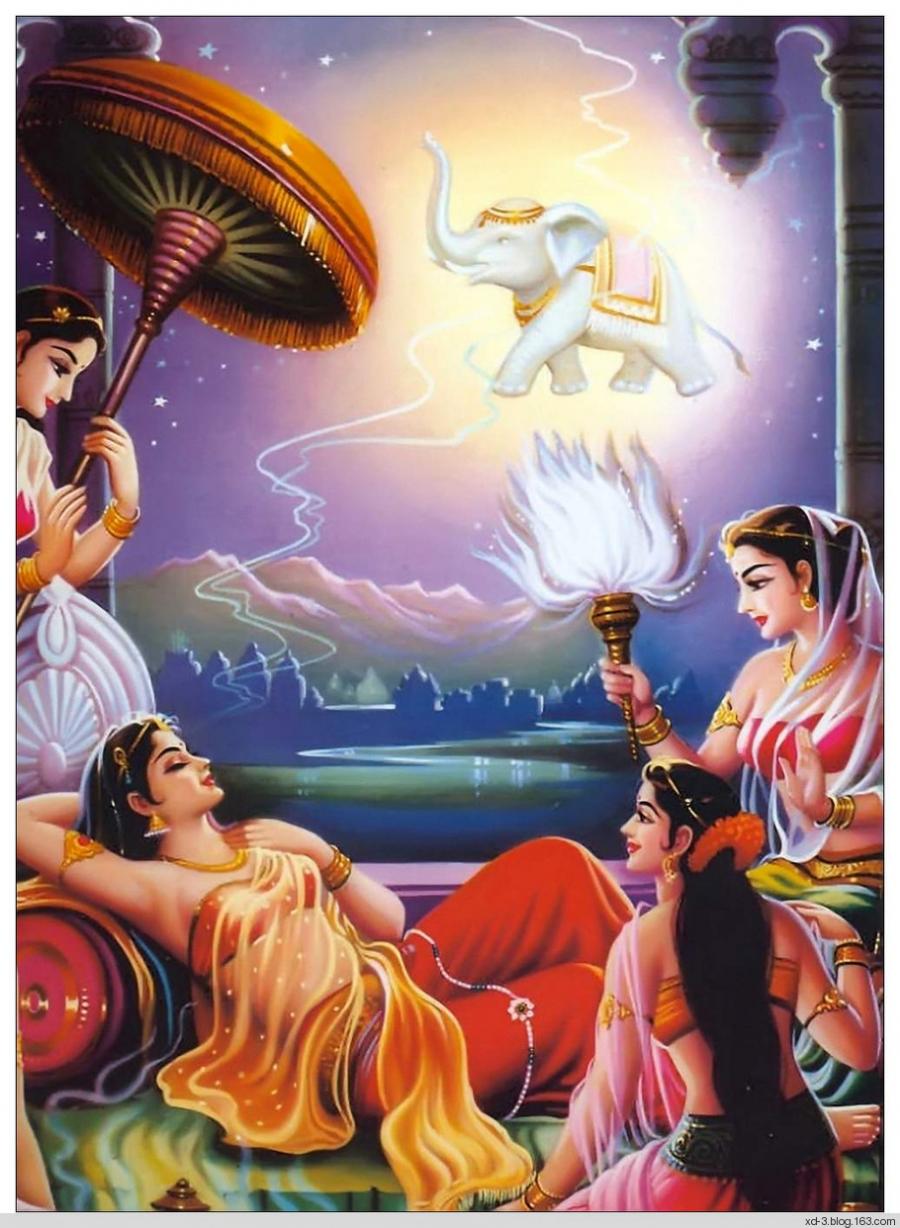 梦象受孕:佛陀的母亲摩耶夫人梦见白象而受孕。